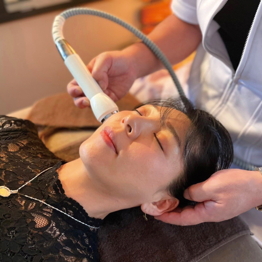 山梨初!「ヒト臍帯血幹細胞美顔鍼」ヒト幹細胞培養液を含ませたシートマスクを使用した美顔鍼。グロースファクター(細胞増殖因子)配合原液と60% 以上高濃度配合の「ヒト臍帯血幹細胞培養液」により、EP(エレクトロポレーション)で肌の奥まで有効成分を入れ、最後にフェイスマッサージを施します。肌のハリ・弾力回復、美白効果、小ジワの回復、くすみ・クマの改善…などのお悩みの方におすすめ!マイナス10歳のお肌へ導きます。